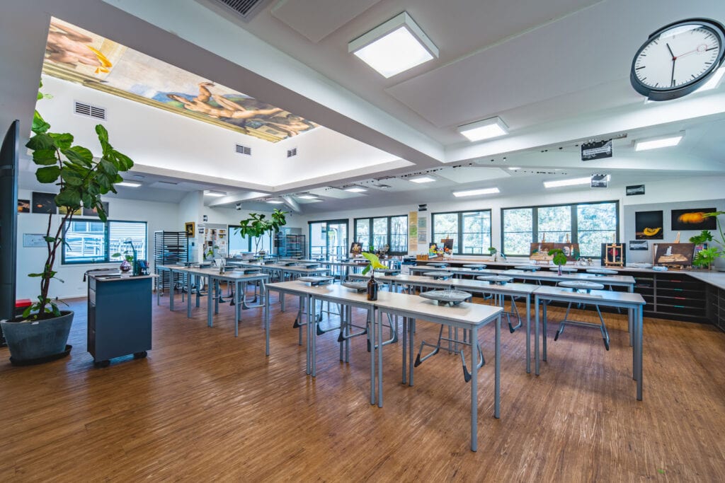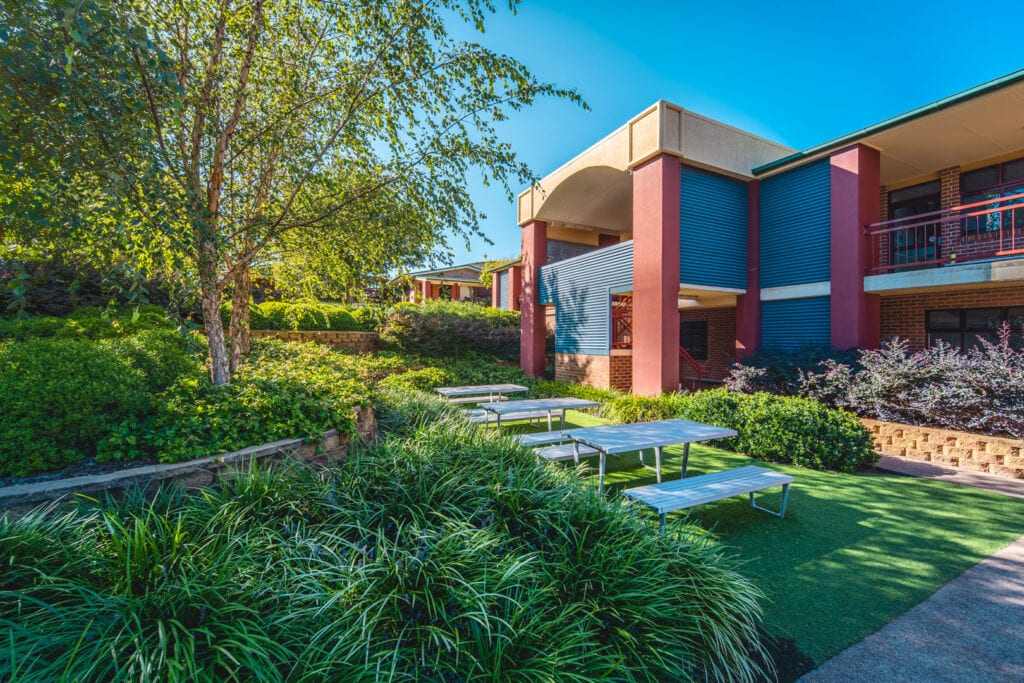 Our Primary and Secondary classrooms are conveniently grouped together, making it easy for students to navigate the school. Included onsite are a variety of state-of-the-art facilities, including our Visual Art Building, Technology Centre, Function Centre (with commercial kitchen), and our recently established Music Centre. Our landscaped areas also complement the natural beauty of the school’s surroundings, with attractive gardens and communal spaces that facilitate student interaction and community.